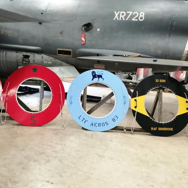 Aircraft graphics played a large part in AB Military and we are already starting to pick up work in this sector. We have previously provided graphics for many different aircraft currently on display in museums throughout the UK. We can produce markings in vinyl or as paint masks to suit your requirements. Some smaller Items are available off the shelf to add those small details to your aircraft. Custom graphics such as the Lightning Nose Blanks in the photograph can be made to order as can any marking you should require.